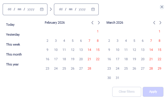 If you wish to reset the selected parameters while choosing a time period in the calendar, click the Clear filters button.