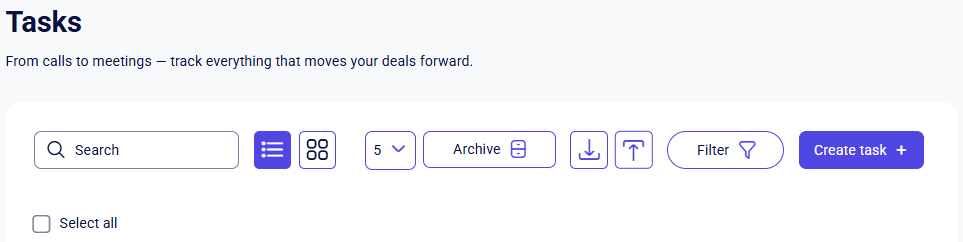 The Select All button, which allows you to select all tasks on the page with a single click.