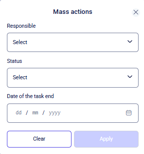 This button allows you to bulk-edit all selected items (tasks). After clicking the button, a pop-up window will appear with available bulk actions: