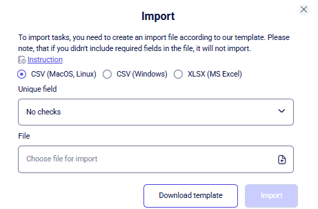 Then you need to create a file for upload. Click Download template, fill it with data following the prompts in the instructions, and save the updated file.