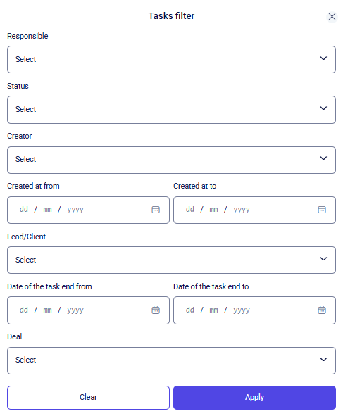 - Date of the task end from | Date of the task end to