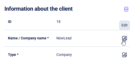 To update a parameter, click the Edit icon to the right of the selected field. For example: