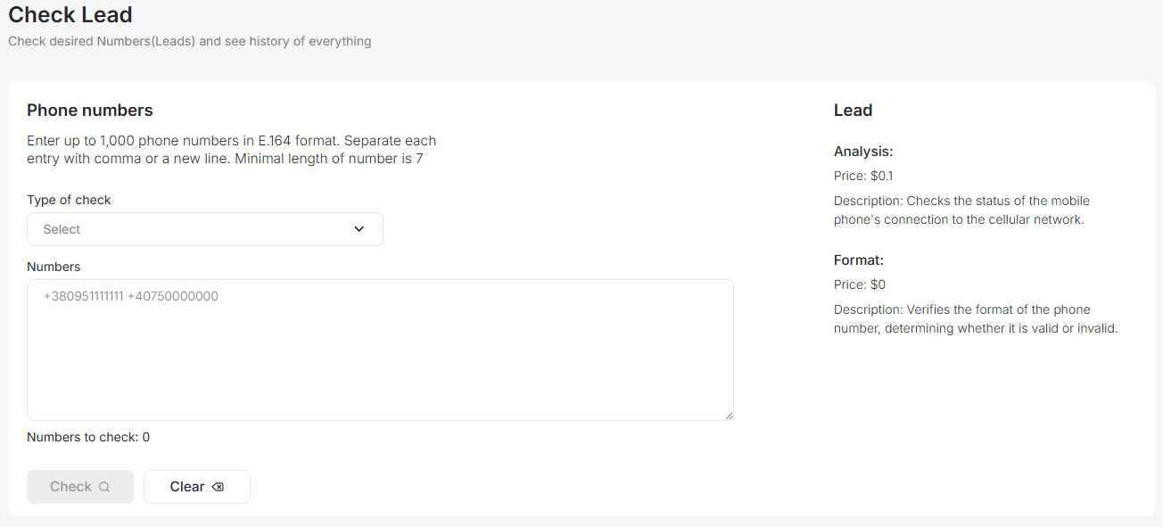 If you decide not to proceed with the number analysis, you can reset the entered phone numbers by clicking the 'Clear' button.