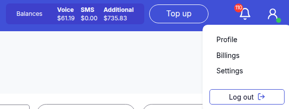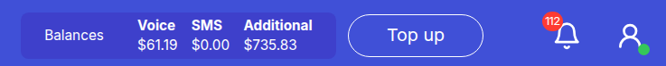 The ‘Top up’ button redirects you to the balance replenishment page, described in the following section.